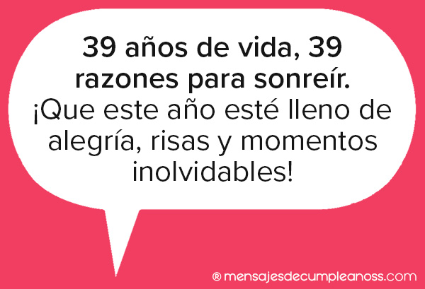 • En tus 39 años, llevas contigo el tesoro de experiencias vividas y sueños aún por cumplir. ¡Feliz cumpleaños y que cada deseo se haga realidad!