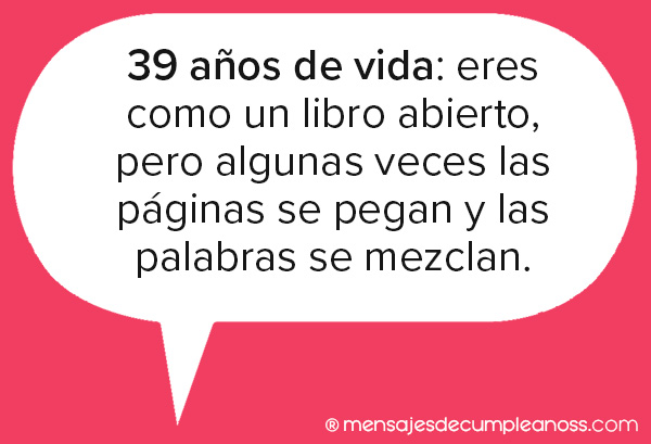• 39 años de vida: eres como un libro abierto, pero algunas veces las páginas se pegan y las palabras se mezclan. ¡Feliz cumpleaños al lector valiente!