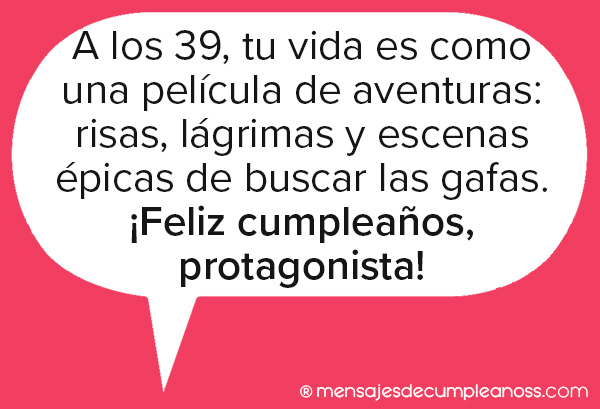 • A los 39, tu vida es como una película de aventuras: risas, lágrimas y escenas épicas de buscar las gafas. ¡Feliz cumpleaños, protagonista!