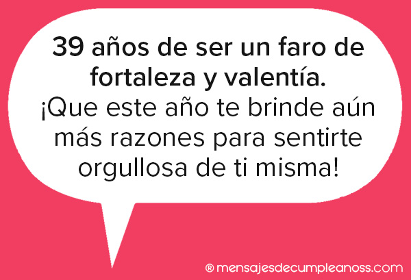 • A los 39, tu fuerza y ​​determinación son inspiradoras. ¡Que este nuevo año te traiga desafíos emocionantes y éxitos asombrosos!