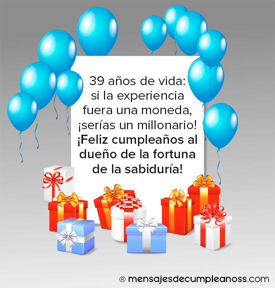 • En tus 39 años, has acumulado un tesoro de experiencias y conocimientos. ¡Que este nuevo año te traiga aún más razones para celebrar y compartir tu sabiduría!