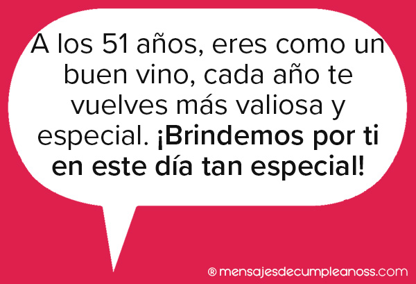 • A los 51 años, eres como un buen vino, cada año te vuelves más valiosa y especial. ¡Brindemos por ti en este día tan especial!