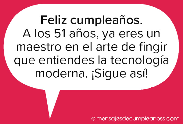 • Feliz cumpleaños. A los 51 años, ya eres un maestro en el arte de fingir que entiendes la tecnología moderna. ¡Sigue así!