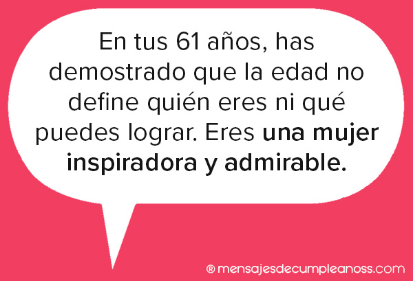 - En tus 61 años, has demostrado que la edad no define quién eres ni qué puedes lograr. Eres una mujer inspiradora y admirable.